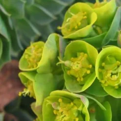 This is a little gem of a plant for gravel gardens or a hot sunny border with dry soil. The grey foliage makes wonderfully architectural low growing clumps with the yellow-green flowers appearing in terminal clusters during spring.