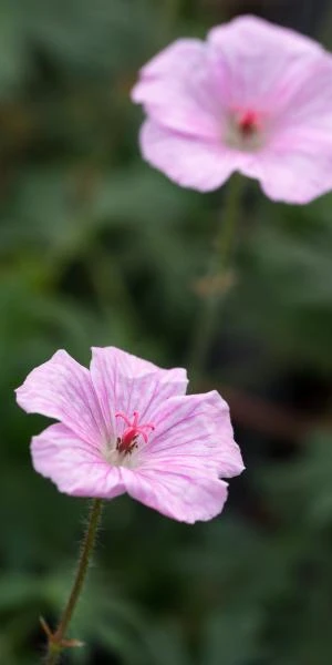 This ankle-high ‘bloody cranesbill’ forms a carpet of finely cut dark green leaves studded with delicate upward-looking pale pink flowers with darker pink veins.