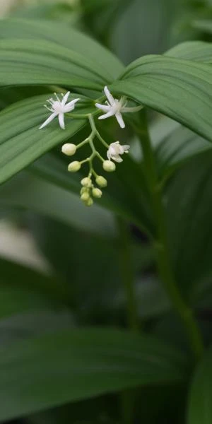 Commonly known as ‘Starry False Soloman’s Seal’, this tough but delicate looking plant is an ideal candidate for a woodland scheme and looks lovely planted in drifts, helping to brighten up more shady areas. Its scale and naturalistic form also suits smaller informal gardens, where it combines well with ferns and Lamprocapnos varieties. It thrives in a humus rich, fairy fertile, moist soil with some drainage in partial to full shade.