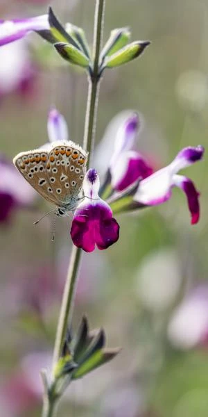 This stunning bi-coloured, rich purple and white flowered, shrubby perennial, is a subtler and perhaps some may say, easier to place, relative of the highly popular Salvia ‘Hot Lips’. Like its famous cousin, Salvia ‘Amethyst Lips’ flowers throughout June and October and grows, to about 100 cm x 75cm and is equally at home in either a mixed border or a large pot, in moist but well drained soil, in full sun.
